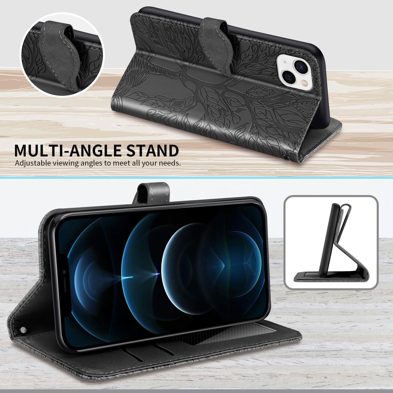 New 3D Embossed Life Tree Wallet Phone Case For iPhone