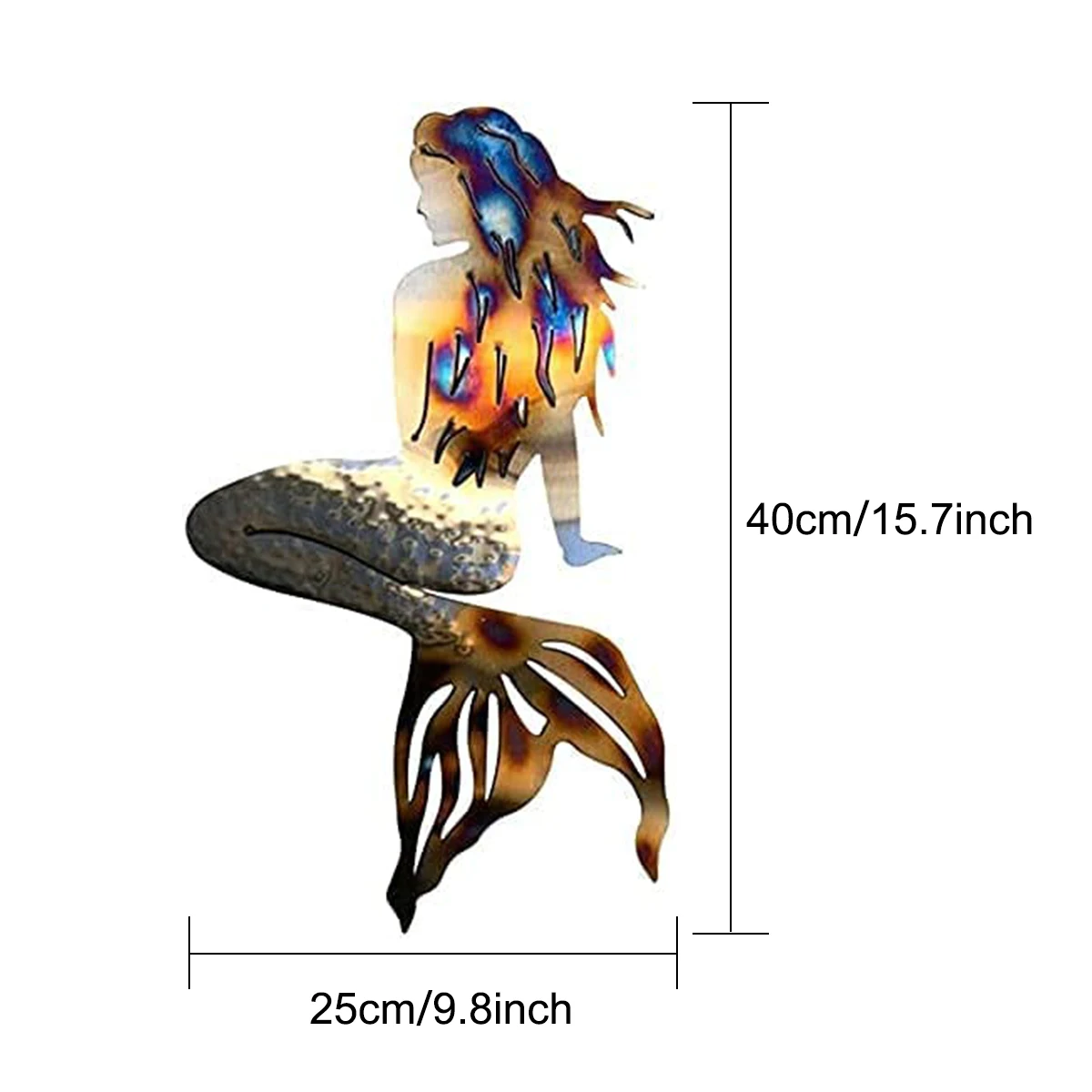 The mermaid wall decoration is made of high-quality iron art, with strong structure, rust-proof and durable. It can be used in the rainy season, indoor and outdoor for a long time.