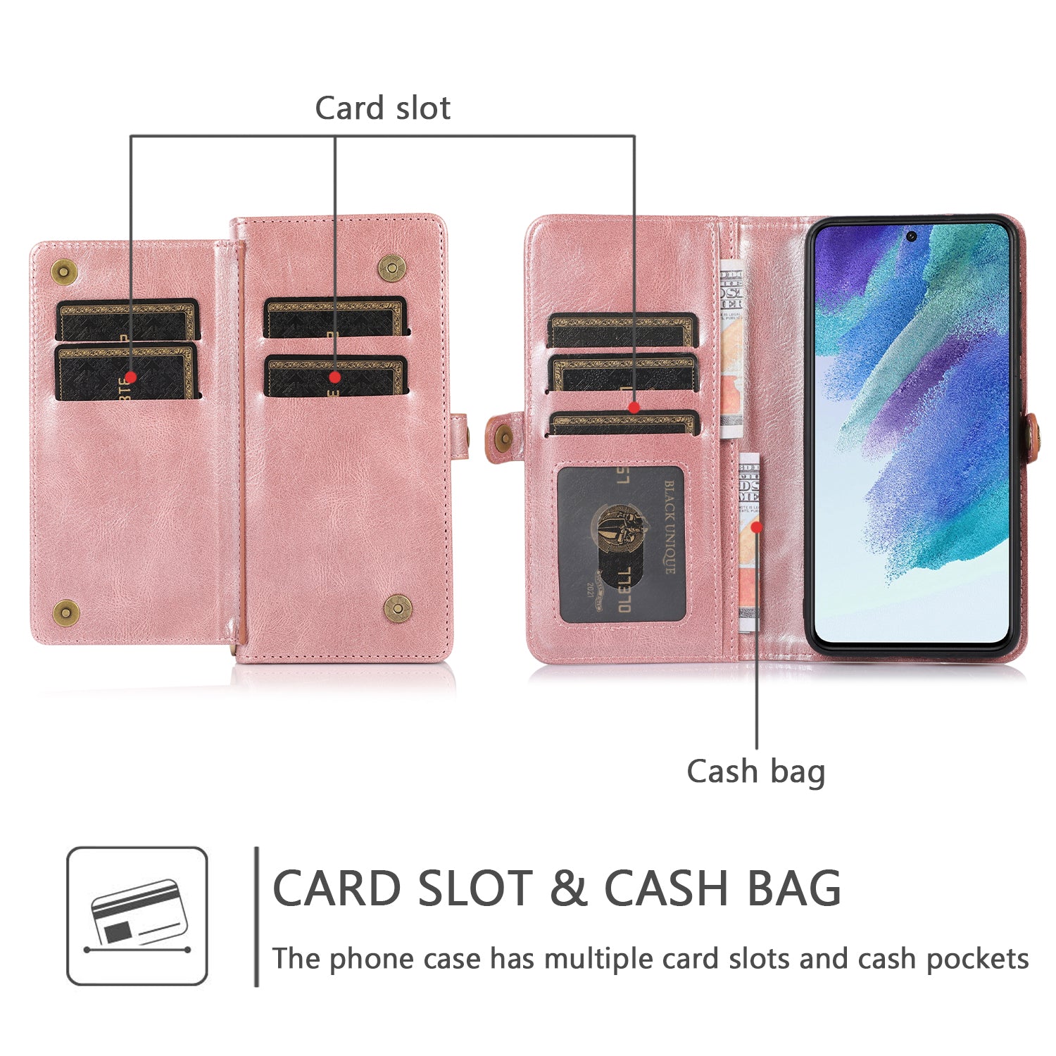 - [Wallet Case Design] Perfect Combination of a wallet and cell phone case ,With id Credit Card Slots, it can be used as wallet to keep multi credit cards, cash, ID, and money