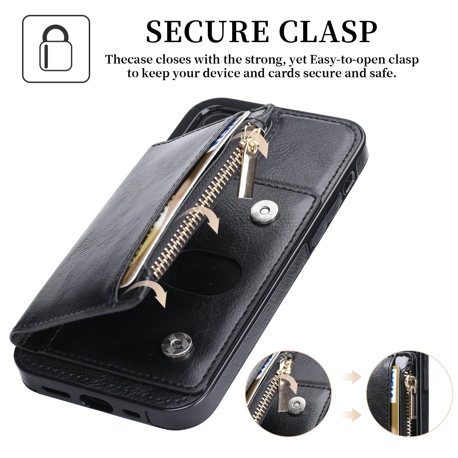 - SECURE CLASP-the case closes with strong,yet easy-to-open clasp to keep your device and cards sucure and safe.
