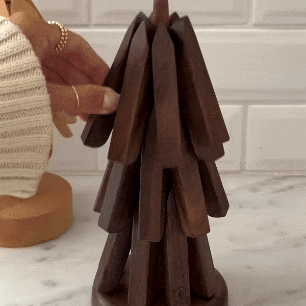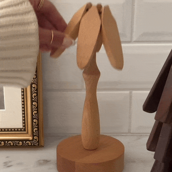 Each wooden trivets for hot dishes has six small wooden pieces, take one from the bracket and put it directly on the desktop, no need to flatten it in advance, directly to carry the apparatus from the top and slowly put it down, because of gravity, it will automatically unfold and play its due role, every time you use it, it is an interesting experience!