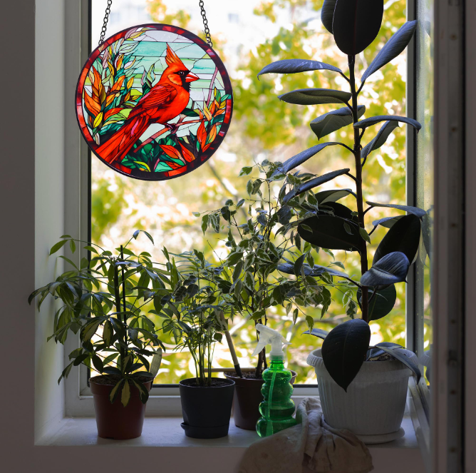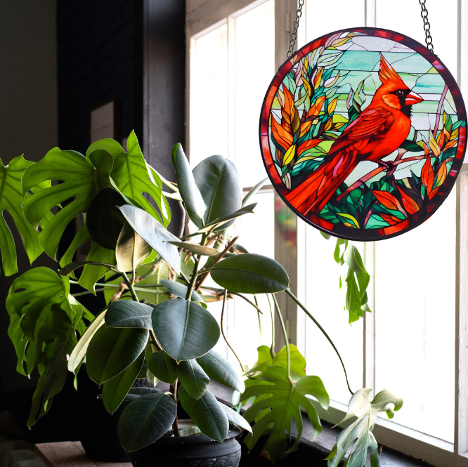 Stained Glass Memorial Suncatchers for Windows - Featuring red bird designs that symbolize hope, inspiration, protection, resilience,love, loyalty, vitality making these suncatchers meaningful gifts.