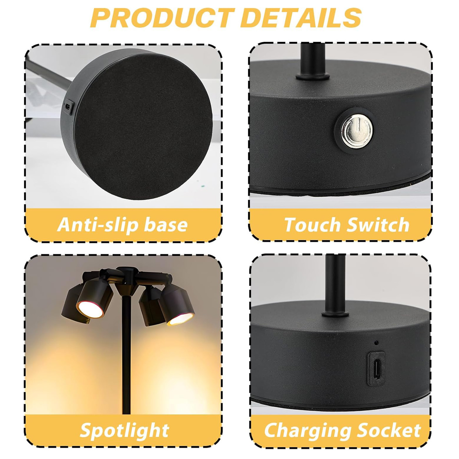 Modern Minimalist Design: The cordless lamp body is made of metal with electroplated surface, smooth and textured. The base of led table lamp is equipped with a non-slip pad to prevent accidental tipping. The night lamp’s waterproof design makes it more durable while maintaining an elegant style.