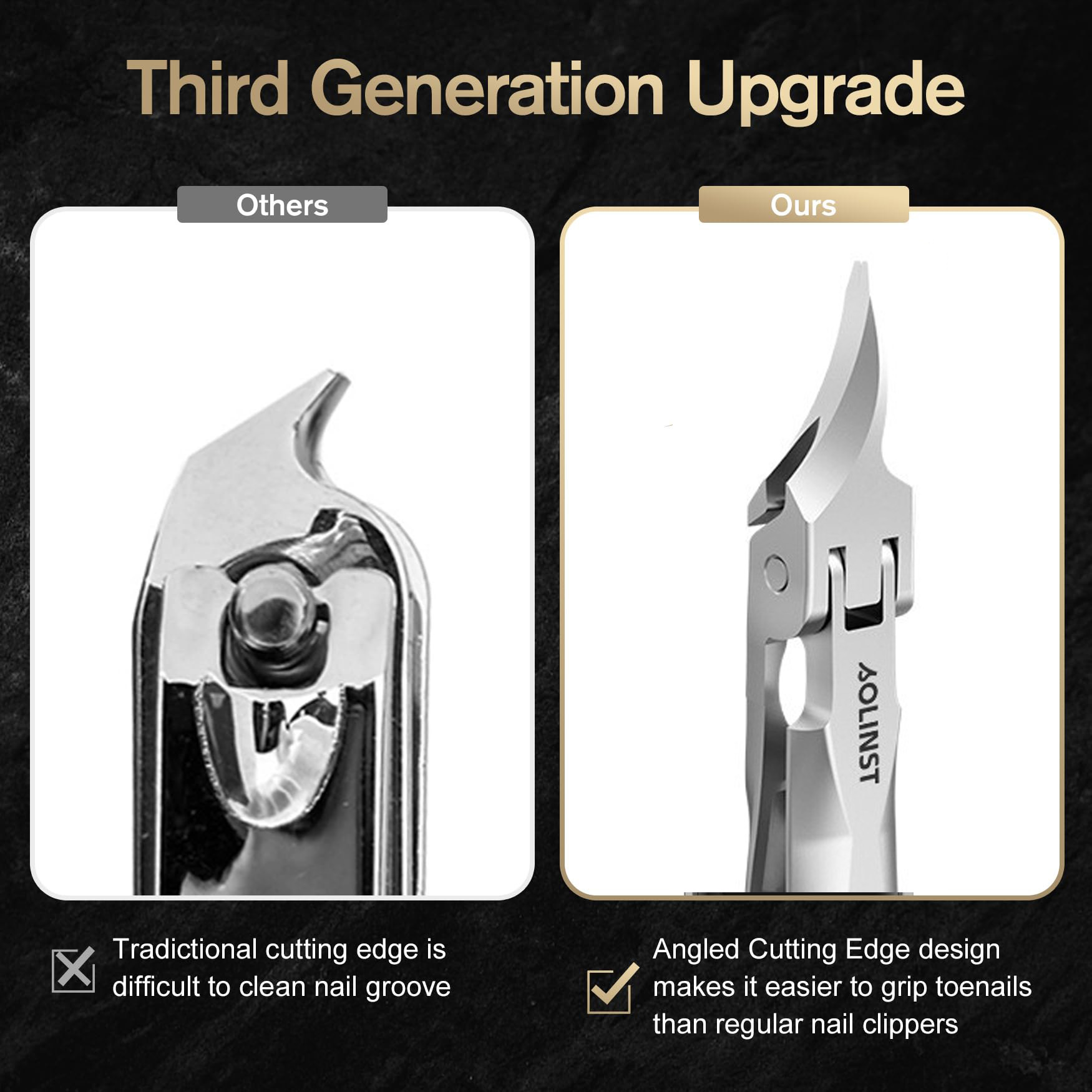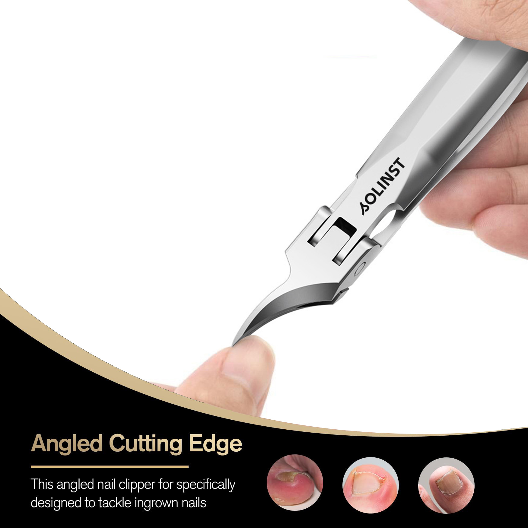 DESIGNED FOR INGROWN NAILS - Featuring a brand new slant curved jaw design with a pointed tip, our nail clipper for ingrown nails makes it easy to trim into the nail groove and avoid injury when cutting nails.